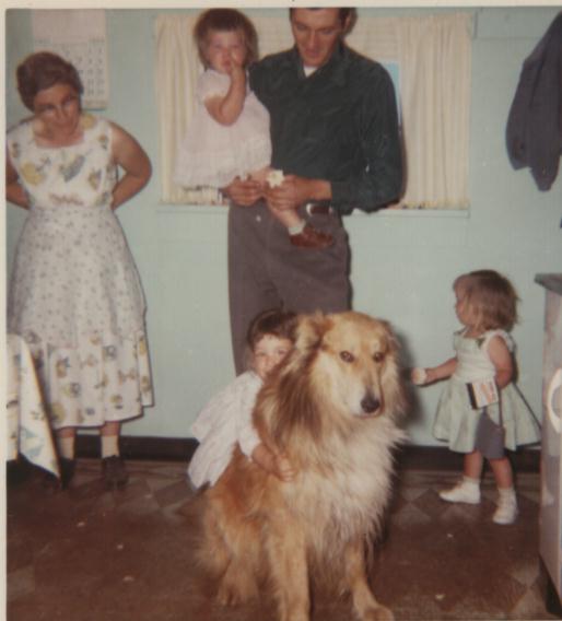 with her son, George Donald, three of George's children and her dog, Brownie, in Charlo, Montana