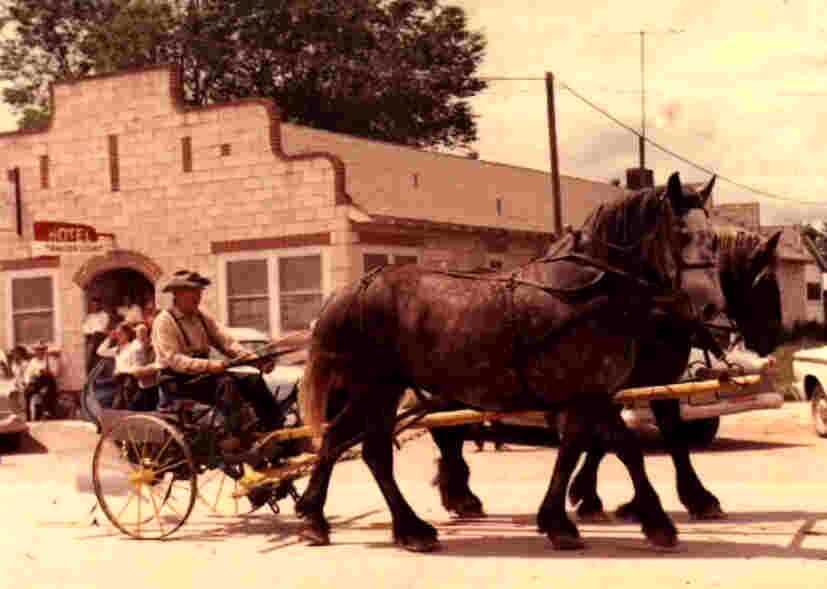George Rolla West driving a team of Percheron Horses