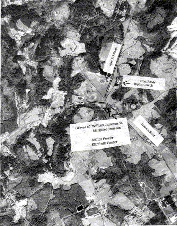 This picture is of the cemetery with the house and a church across the street (Jameson road)