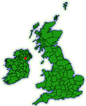 Armagh covers an area of some 480 square miles and includes the towns of Armagh, Lurgan, Portadown and Keady. Its terrain is flat in the north with many peat bogs and low hills in the south. It is the smallest county in Northern Ireland and its produce is heavily agricultural. Apples, potatoes and flax all being major crops. The town of Armagh was for 700 years the seat of the Kings of Ulster and today the Archbishop of Armagh is nominally 'The Primate of All Ireland'. Armagh is colored here in red...Monaghan is the county directly southwest of Armagh. Monaghan, Republic of Ireland Known In Irish as Mhuineachain, this county covers some 500 square miles in the province of Ulster and has a population of 53,000. The county town is Monaghan and the landscape lends ideally to agricultural pursuits. The county is low and rolling and includes the rivers Finn and Blackwater. Main sources of income are derived from
